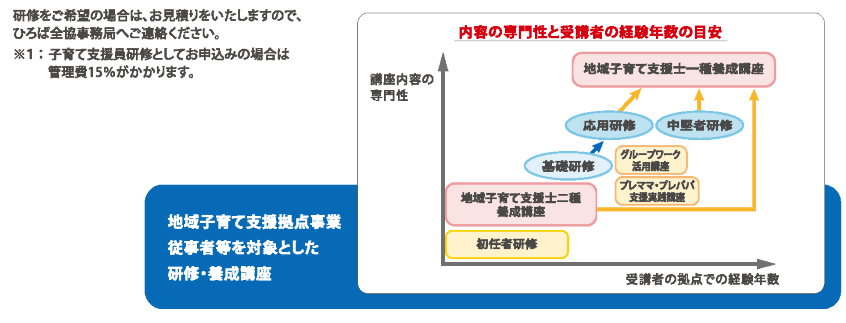 *子育て支援員研修としてお申し込みの場合は管理費(15%)がかかります。*見積については講師・ファシリテーター等の謝金・旅費・資料代・管理費等が研修プランにより異なります
