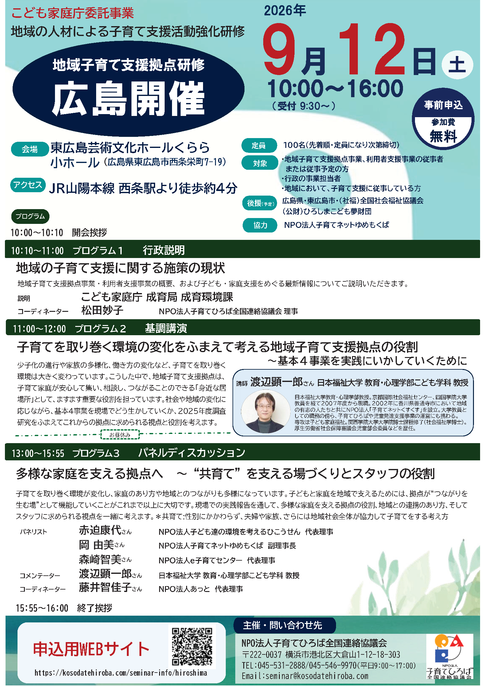 こども家庭庁委託事業 地域の人材による子育て支援活動強化研修地域子育て支援拠点研修 広島開催