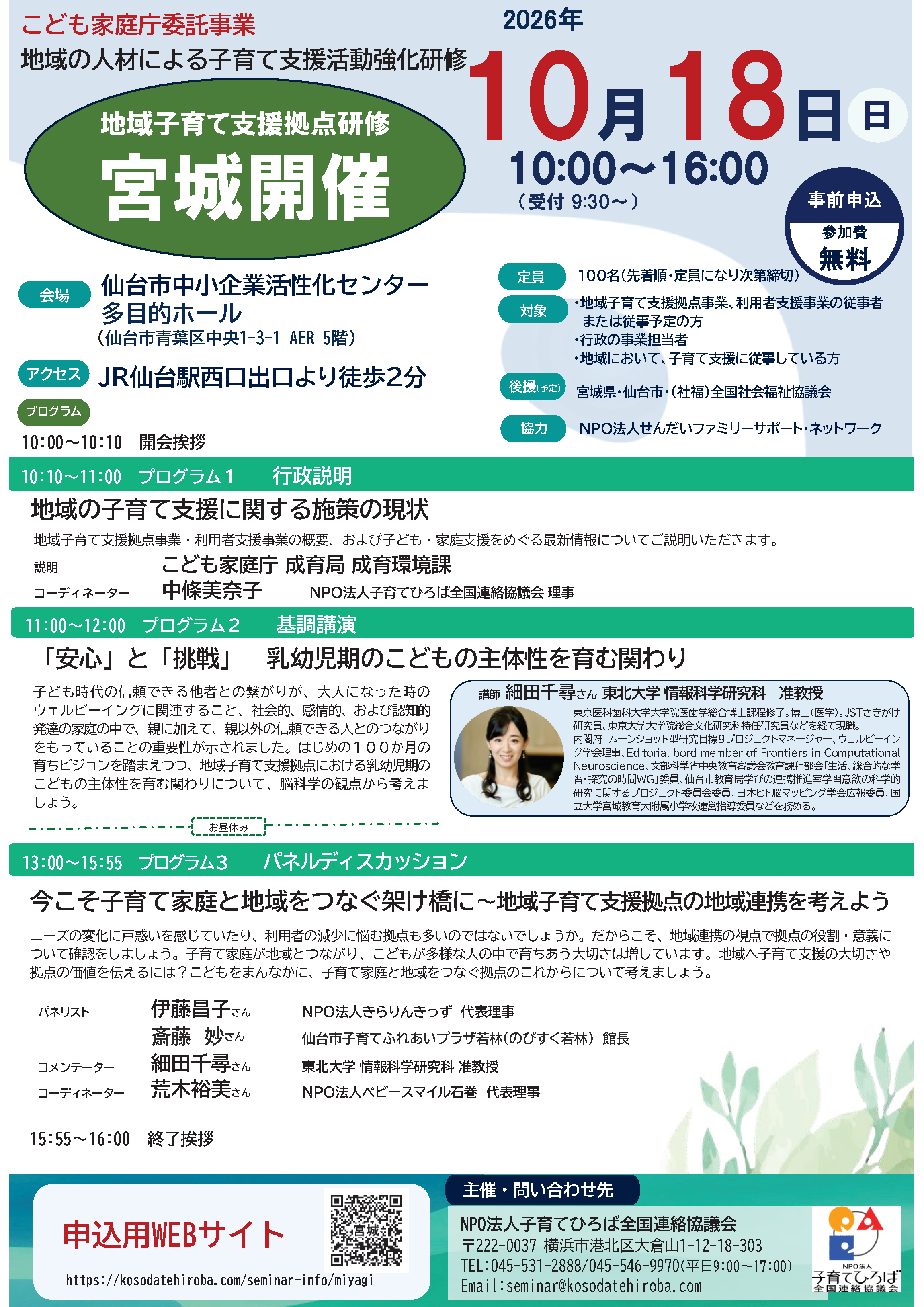 こども家庭庁委託事業 地域の人材による子育て支援活動強化研修地域子育て支援拠点研修 宮城開催