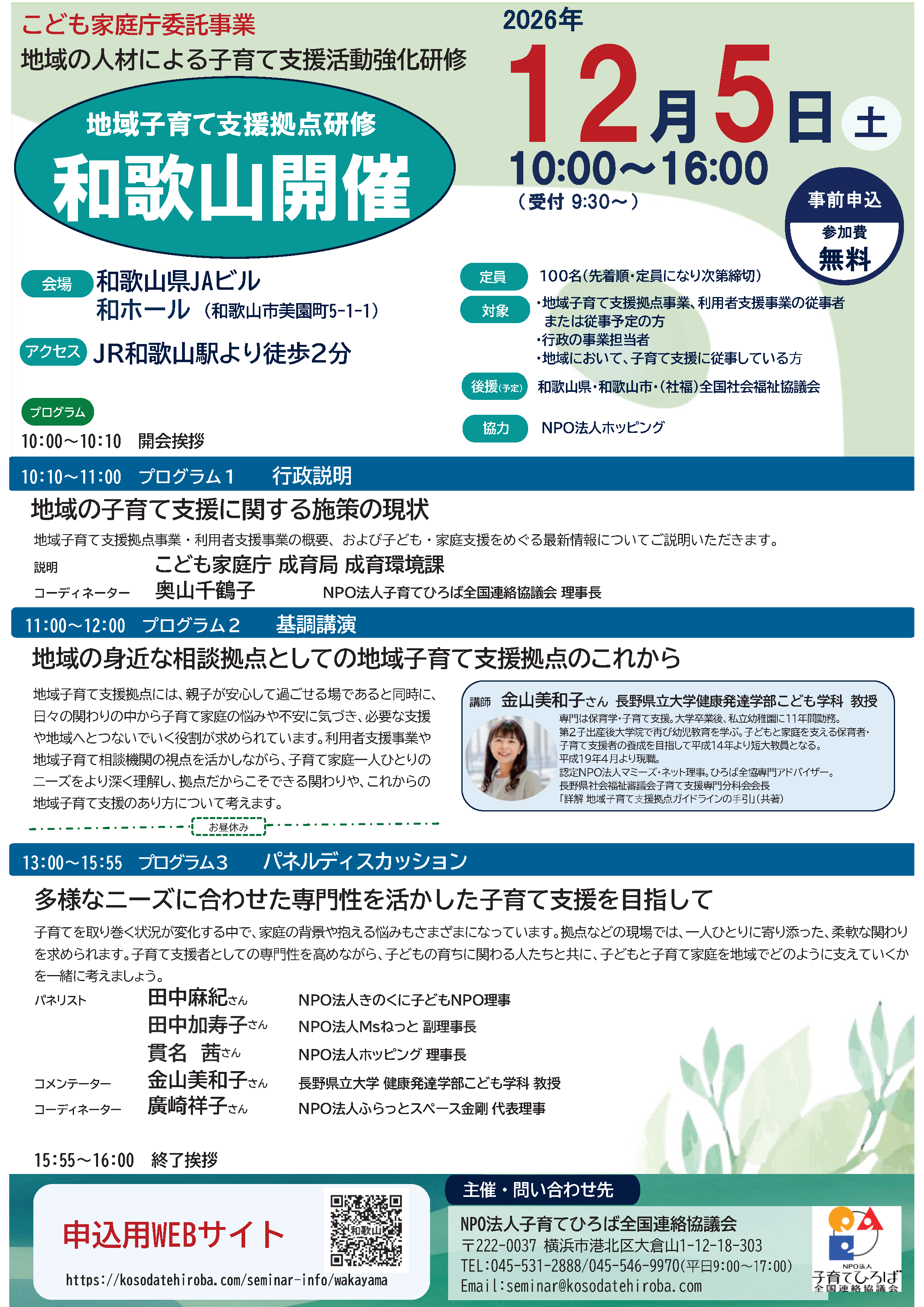 こども家庭庁委託事業 地域の人材による子育て支援活動強化研修地域子育て支援拠点研修 和歌山開催
